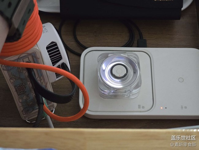 在充電續(xù)航上,官方使用無線充電方式,在一個水晶盒子里,儀式感非常棒,盒子中間是一圈白光,用于顯示Ring和盒子的電量,打開盒子,會在Galaxy手機(jī)會彈窗動畫,顯示當(dāng)前Ring戒指和盒子的電量,同時盒子亮起白圈燈光,光圈長度對應(yīng)電量多少,按壓中間的按鍵也可以亮起白圈燈光顯示電量,盒子本身支持1.5W有線充電,放入Ring戒指給Ring充電時,再給盒子插電就是0.5W,無線充電下盒子支持3W,損耗到1.5W。續(xù)航上8號以上因?yàn)槌叽绱罅耍姵厝萘恳灿兴阍黾?,基本上都能做?周的續(xù)航,不需要手表按天算充電,大大利好被智能手表續(xù)航勸退的用戶。