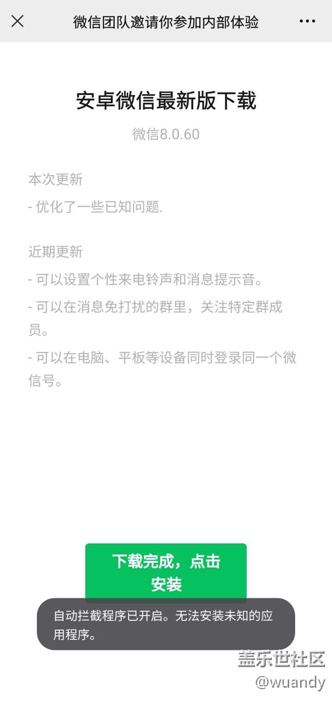 微信內(nèi)測版8060無法安裝 圖片