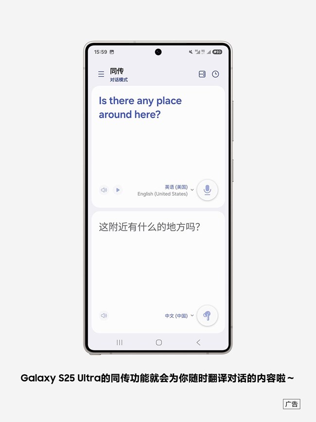 Galaxy S25 Ultra的同傳功能可隨時翻譯對話的內(nèi)容。