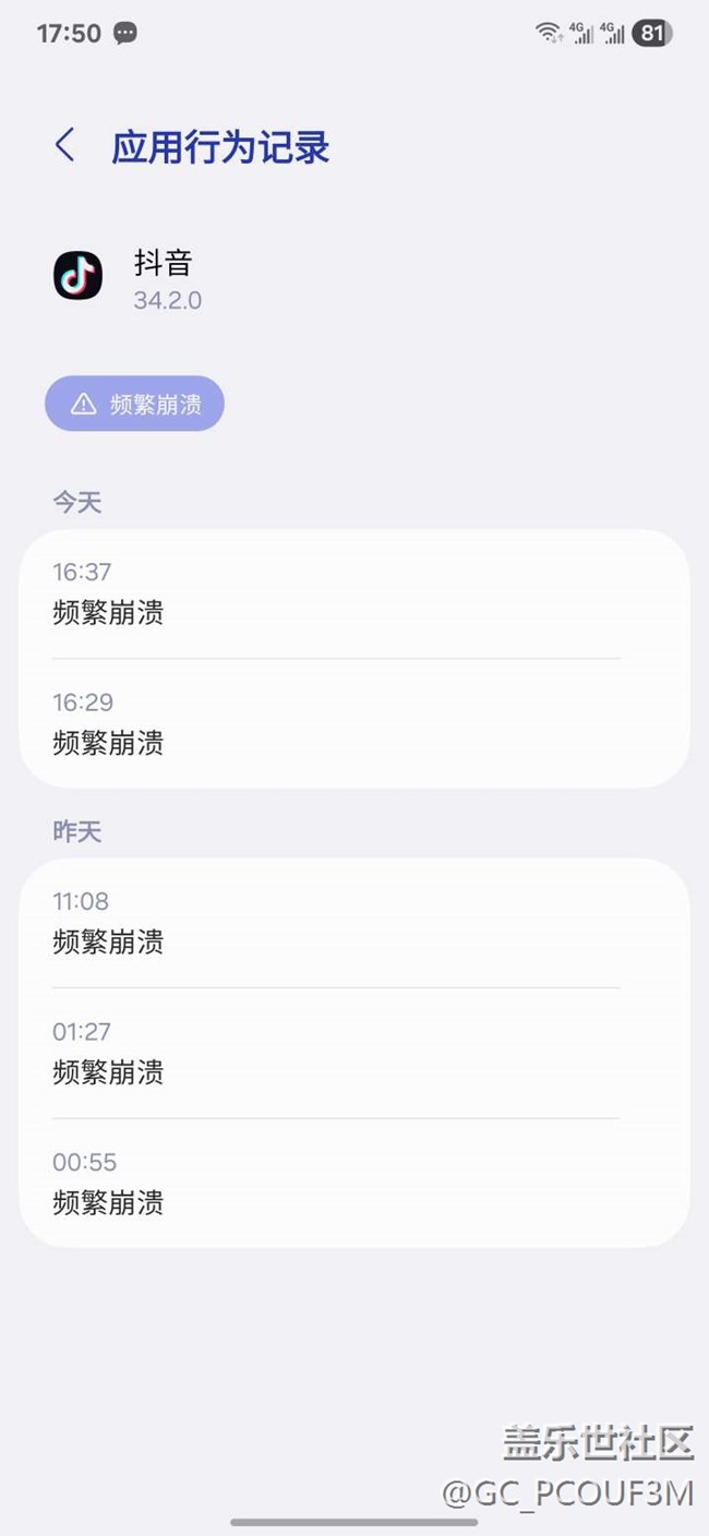升級oneUI7后近期刷抖音頻繁崩潰進(jìn)去刷一至2個視屏就卡死關(guān)抖音這個app近期也沒有升級求處理!