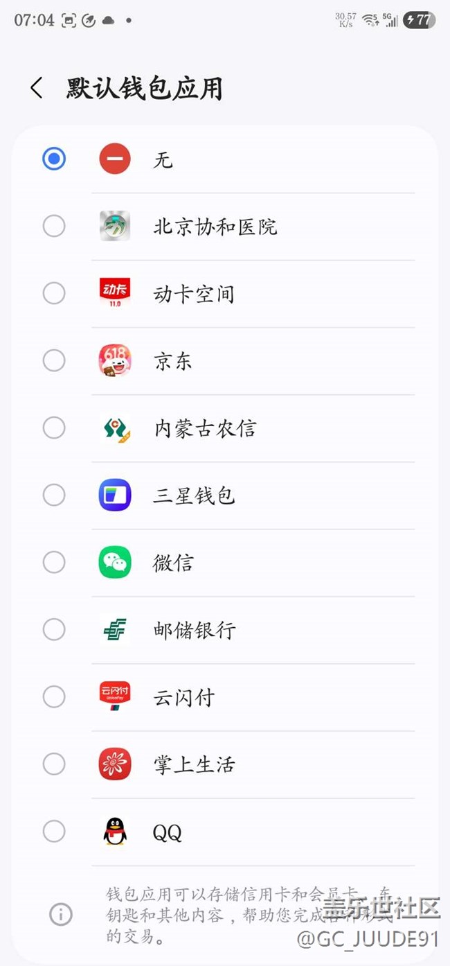 S23U升級7.0后,打開NFC功能后,支付寶“碰一碰”不能用,接觸商家設備沒有任何反應,無法支付。默認錢包程序里也找不到支付寶。