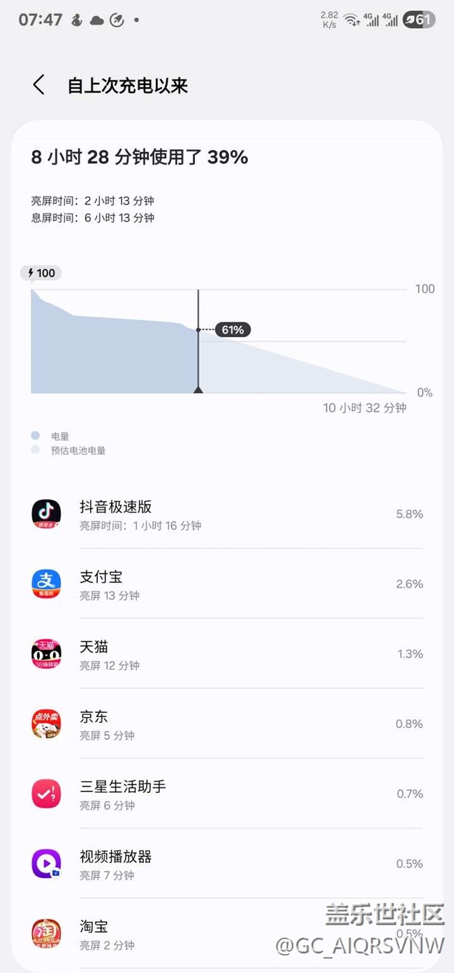 亮屏2小時(shí),待機(jī)6小時(shí)。總用時(shí)8小時(shí)多