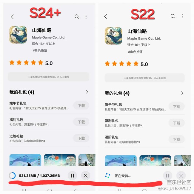 下載網(wǎng)剌S22對比S24+ 圖片