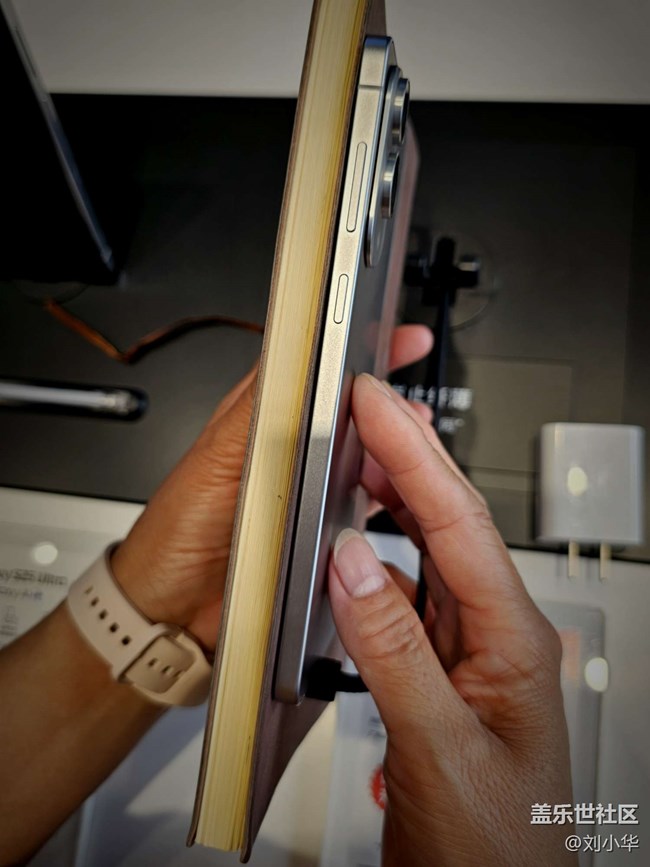 平時(shí)工作的時(shí)候我還會(huì)拿一個(gè)筆記本,我把它也拿了出來(lái)和手機(jī)進(jìn)行比較。毫無(wú)懸念,三星s25edge都要更輕,更薄,我真的是太喜歡這部手機(jī)了。