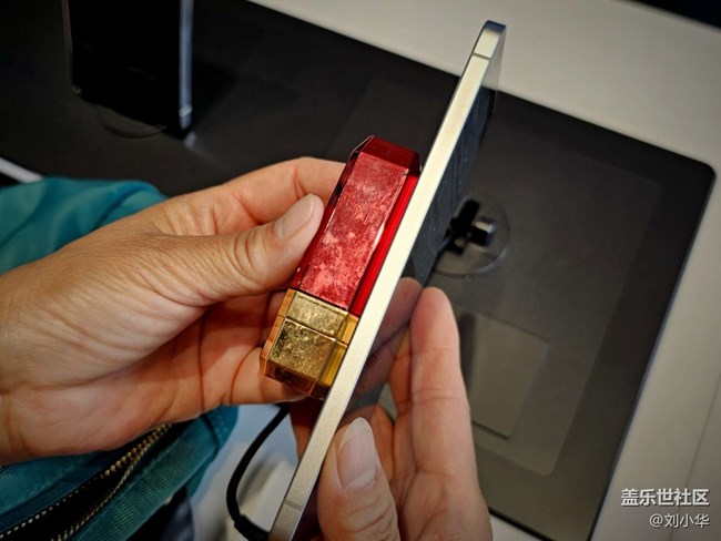 我平時(shí)包里還會(huì)背一只口紅,我把它也拿出來(lái)與手機(jī)進(jìn)行對(duì)比。可以看到手機(jī)非常的輕薄。