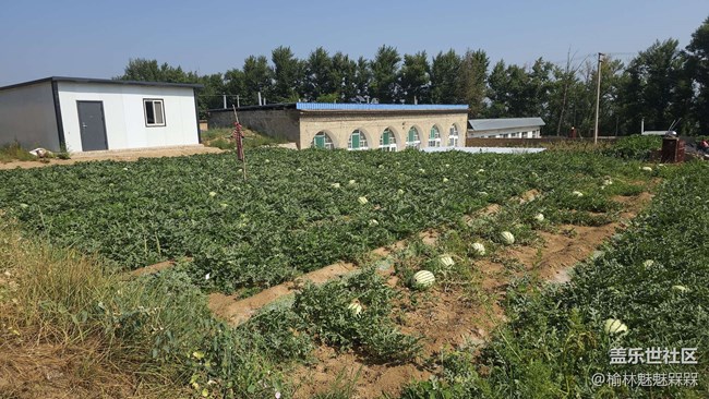 復(fù)前行,見瓜田廣袤,綠秧蔽地,圓實(shí)隱現(xiàn),或半掩葉下,或全曝泥上,紋絡(luò)蒼勁,望之自生爽意。旁有屋舍錯(cuò)落,一白屋素凈,一磚房古樸,檐角微風(fēng)徐來,樹影遙連天際,禽鳥時(shí)鳴于林,田蛙偶噪于野,此間悠然,直教人忘塵囂之?dāng)_,悟自然之真趣也。