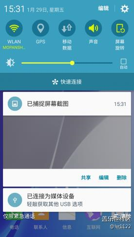 在交互邏輯方面,Galaxy A9追求信息的最直觀化,下拉菜單能直接看到每一條信息,并且還能進(jìn)行編輯。在下拉菜單中,TouchWiz UI則是按照功能進(jìn)行分塊,最重要常用的功能絕對是在最頂上的。
