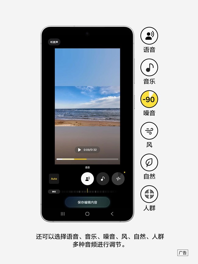 當(dāng)你在嘈雜的環(huán)境下拍攝視頻時(shí),視頻中的噪音會(huì)影響整個(gè)視頻的聽(tīng)覺(jué)體驗(yàn)。Galaxy S25系列中的音頻橡皮擦功能可以幫你降低視頻中嘈雜的背景噪音。
