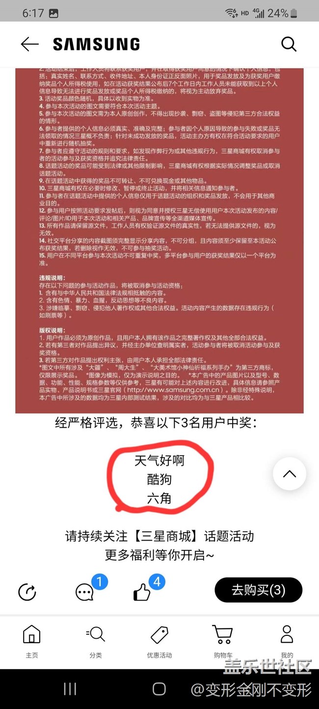 三星商城App話題互動《星中有鯉》中獎名單異議 圖片