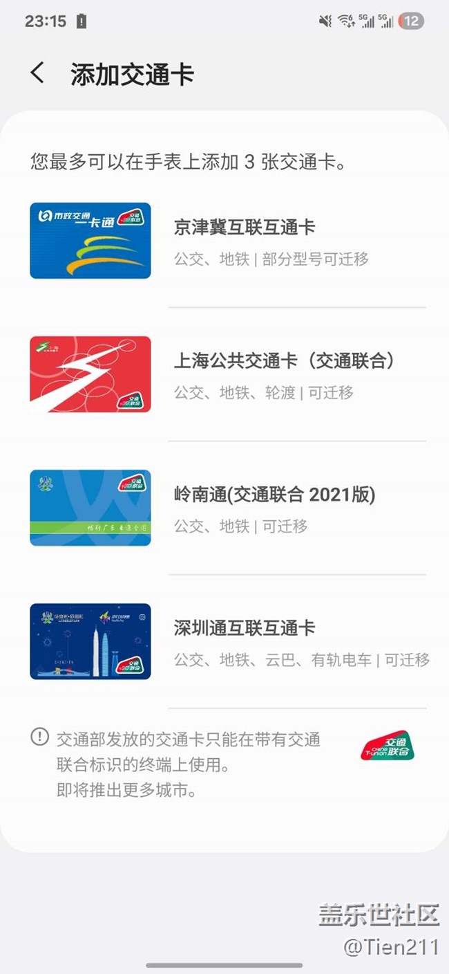 手機已經(jīng)有泉城通和琴島通了為什么手表沒有,同步一下手機的NFC卡這不難吧,現(xiàn)在手表才3張卡太少了也,互聯(lián)互通卡大部分城市都沒有優(yōu)惠意義不大