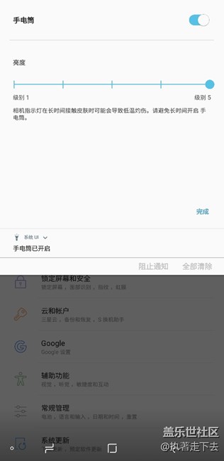 三星s8+手電筒亮度調(diào)整。 圖片