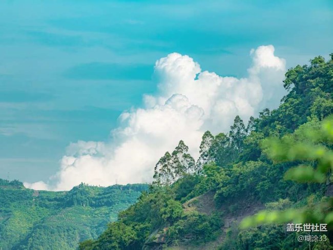 山林間,藍天如洗,大朵的白云像棉花糖似的飄著,周圍綠樹成蔭,每一口呼吸都帶著清新的草木氣息,讓人的心靈瞬間沉靜下來。