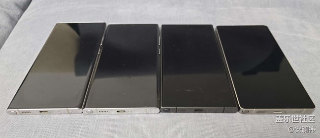 拍個(gè)全家福給大家看看。實(shí)際感受,仍然是note20ultra(最左邊那個(gè))最輕薄,現(xiàn)在仍在服役。屏幕最大當(dāng)然得是S25ultra。