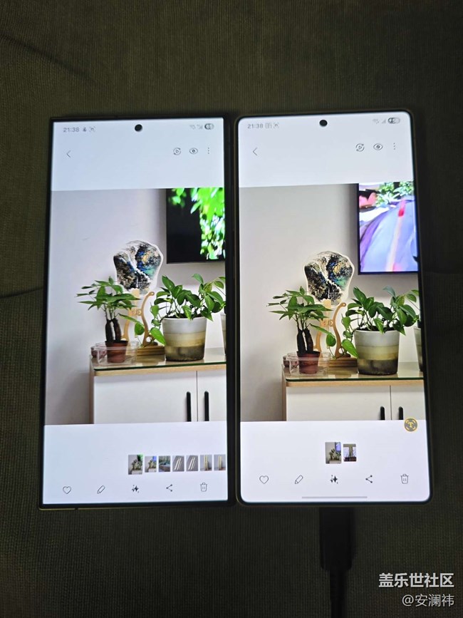 黑屏狀態(tài)下,S25ultra黑得更徹底。反光狀態(tài)下S25ultra發(fā)綠光,S24ultra比較正常。