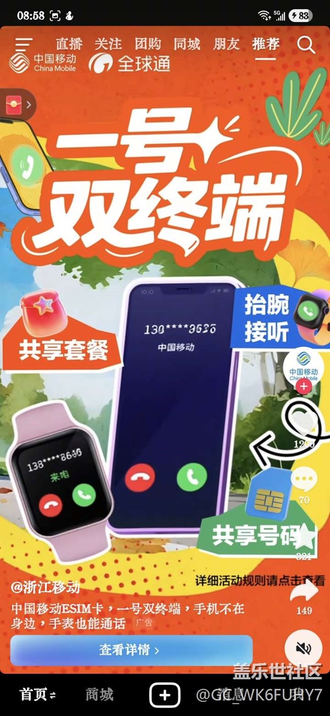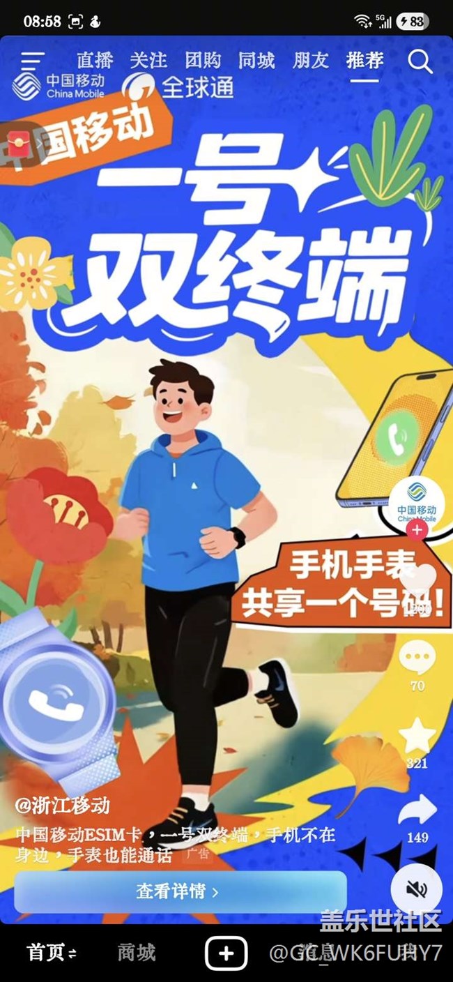 抖音上看到的浙江移動廣告 圖片