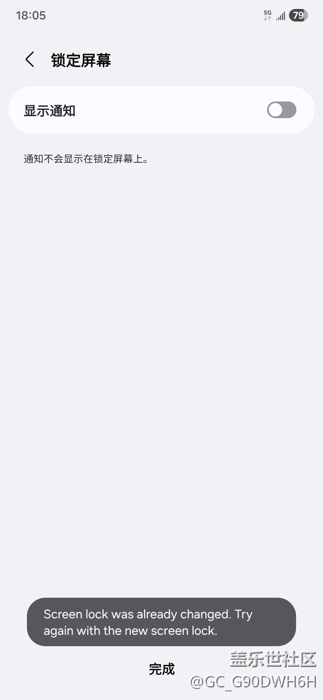 設(shè)置圖案解鎖或者數(shù)字密碼解鎖時(shí),經(jīng)第二次確認(rèn)后顯示不成功,界面出現(xiàn)英文提示“Screen lock was already changed,Try again with the new screen lock”