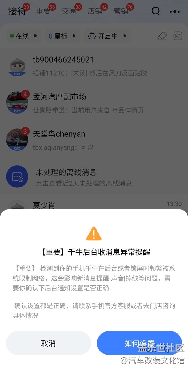 千牛退出后臺時間一長就收不到信息,各種設置都正確,從六月份換的手機,也更新了很多版本,也咨詢過淘寶客服,也沒有能解決問題