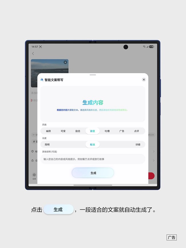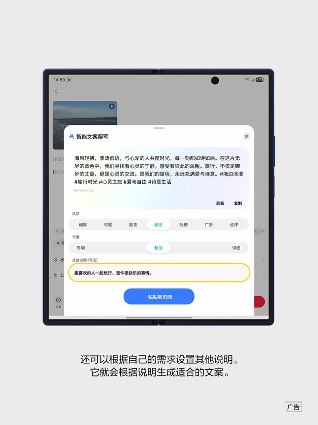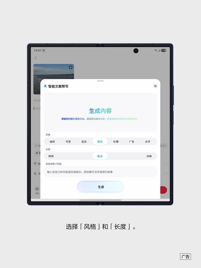 三星Galaxy Z Fold7的智能文案幫寫功能都能根據(jù)你的需求,