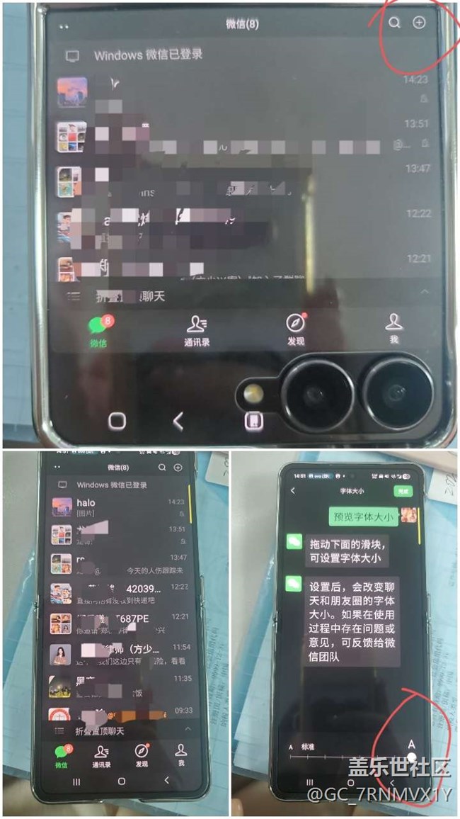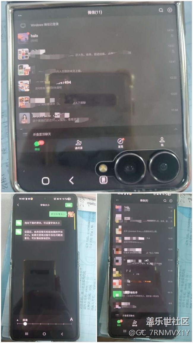 本來外屏用微信還被鏡頭遮擋點不了發(fā)送,后來研究了一下可以調整界面比例,可以發(fā)送了,但是還有下面幾個使用不適