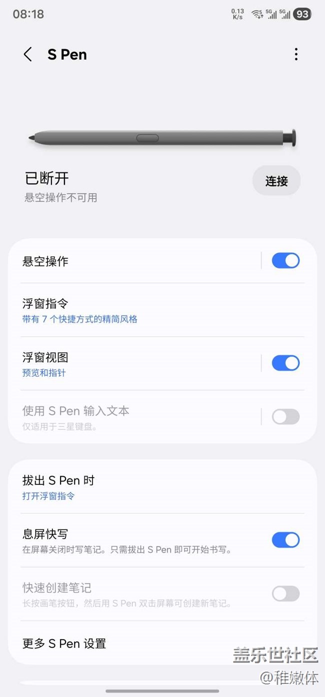 s22u上的spen無法連接手機使用懸空操作 圖片