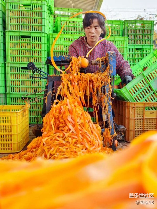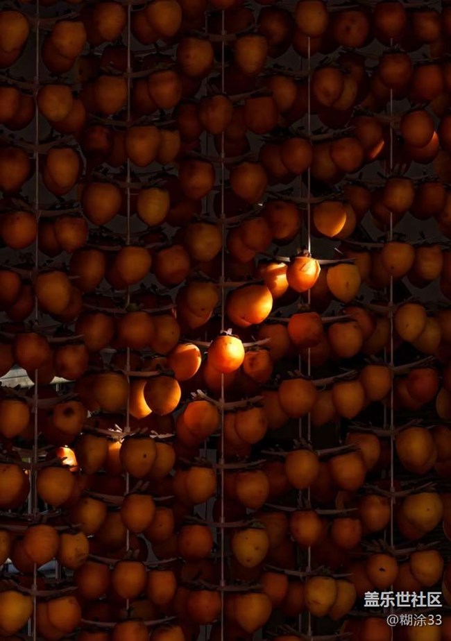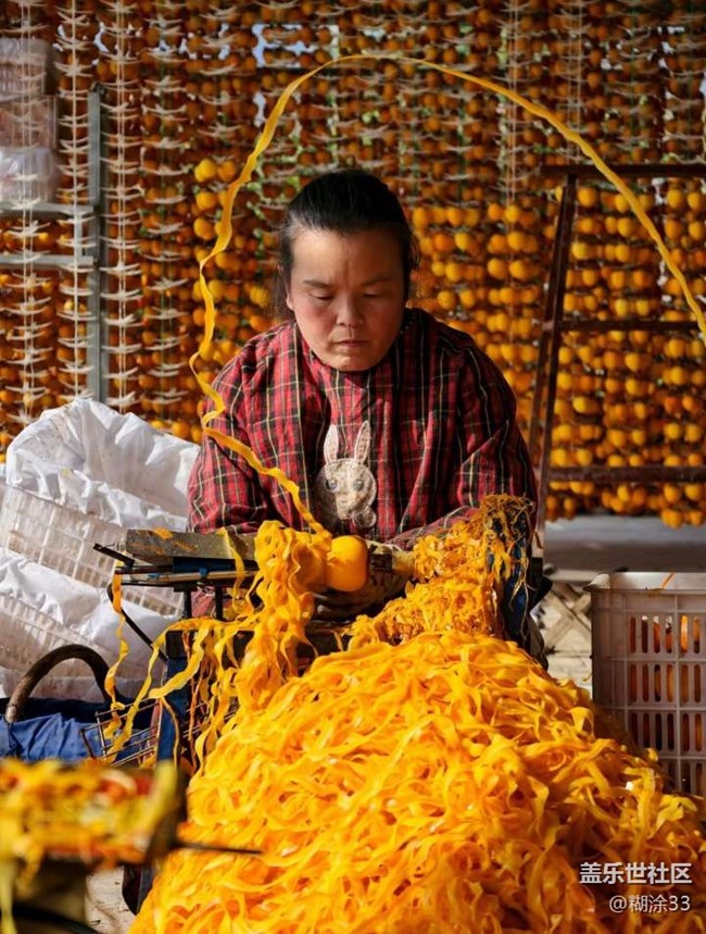 看那成串的柿子懸于架上,在光影里泛著溫暖的色澤,像一串串凝固的燈籠,將農(nóng)家小院點亮。農(nóng)戶們坐在機器前,嫻熟地給柿子去皮,橙黃的果皮簌簌落下,堆成了一座小丘,而露出的果肉正等待著蛻變成甜蜜的柿餅。還有人細(xì)心地將柿子懸掛整齊,每一個動作都透著對這份作物的珍視。