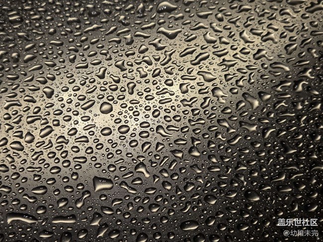 夜晚的雨水滴在轎車上,近看特別漂亮。