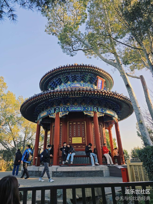 14時 30 分,星粉團(tuán)隊(duì)自景南門入,沿五方亭拾級而上。萬春亭作為北京中軸線的制高點(diǎn),南望紫禁城金瓦粼粼,北眺奧林匹克塔直刺蒼穹,形成“一條中軸貫通古今”的視覺通廊。