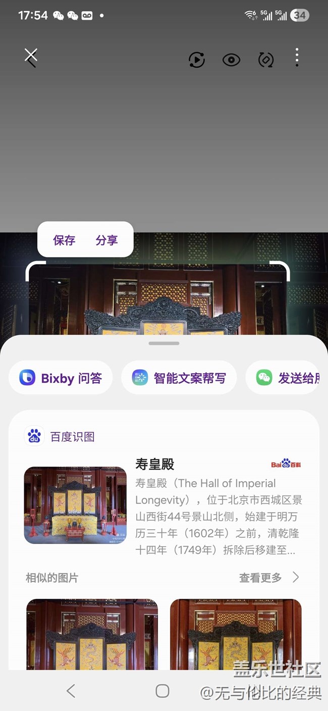 S25 Ultra 新增 13 mm 原生超廣角,融合 AI 畸變矯正 3.0,可在 0.6× 狀態(tài)下自動識別古建斗拱線條,實(shí)時以“云紋基線”校正,確保檐角無拉伸。現(xiàn)場樣張中,壽皇殿正面與兩側(cè)碑亭呈“一”字排布,屋脊獸件依次遞進(jìn),透視自然;殿內(nèi)金磚反射的暖色天光也被多幀 HDR 保留,高光不過曝,暗紋不失真。