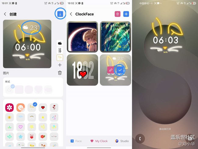 都設(shè)置完成后,我們點(diǎn)擊右上角的保存按鈕,就可以到我的時(shí)鐘樣式當(dāng)中找到了,選中它點(diǎn)擊對(duì)號(hào)進(jìn)行應(yīng)用,你的專屬時(shí)鐘風(fēng)格就有啦。