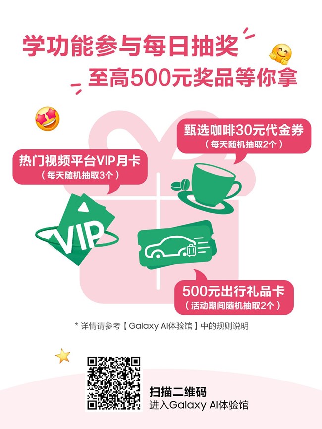 (*活動規(guī)則、獎品詳情詳情請以Galaxy AI體驗館內活動規(guī)則說明為準)
