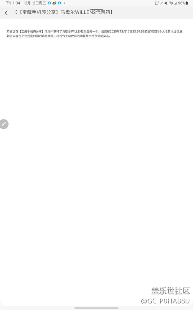 帖子名稱 獎(jiǎng)品地址填寫問(wèn)題,和反饋一些其他問(wèn)題,麻煩解答一下