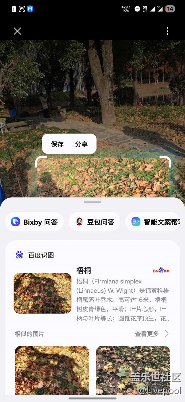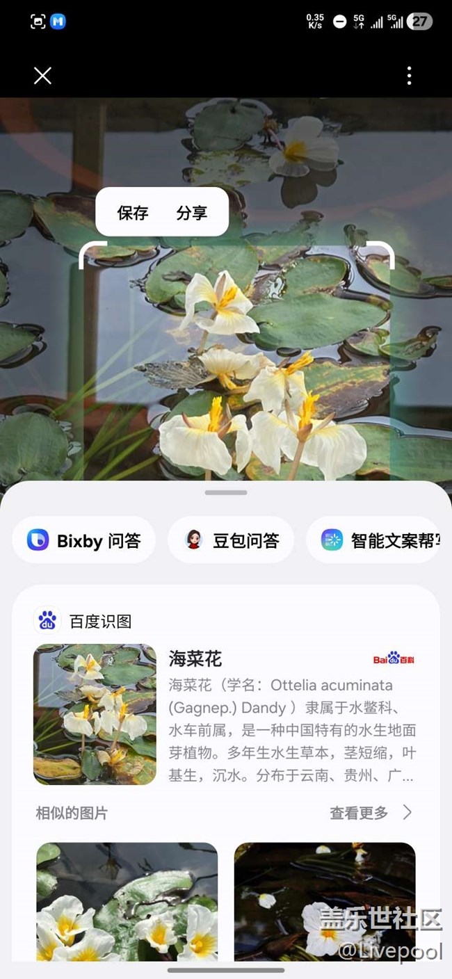 作為植物小白,看到好看的花花草草以前只能瞎猜?,F(xiàn)在遇到這種白色的花,直接長(zhǎng)按導(dǎo)航鍵開(kāi)啟即圈即搜,畫(huà)個(gè)圈立馬識(shí)別出是“海菜花”;看到滿地落葉,圈一下就知道是梧桐。這種“所見(jiàn)即所得”的交互體驗(yàn),讓拍攝過(guò)程充滿了探索的樂(lè)趣,再也不用切出去打開(kāi)瀏覽器打字搜索了。