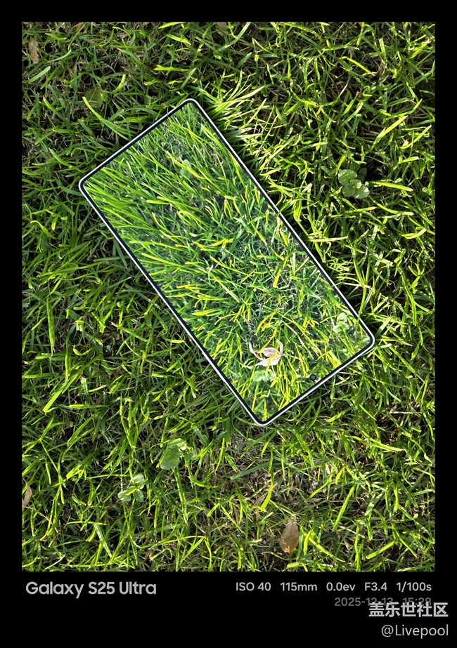 大家一定要看看這張!我嘗試把手機(jī)放在草地上拍了一張“隱形手機(jī)”照,S25U 這塊屏幕在戶外強(qiáng)光下的激發(fā)亮度太強(qiáng)了,顯示效果通透得幾乎和周圍草地融為一體,邊框極窄,視覺(jué)沖擊力滿分!