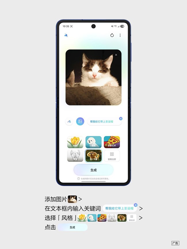 Galaxy Z Flip7的繪圖助手可以幫我們的寵物生成不同風(fēng)格的圣誕照?。