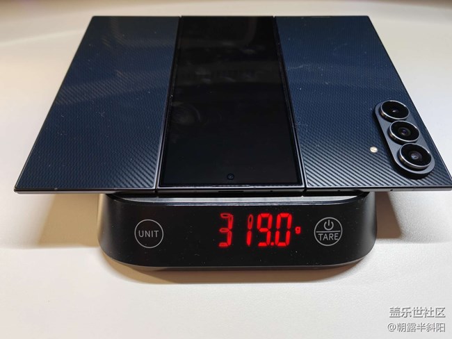 3、重量,官方宣稱309g,實際是未貼膜的重量,實測重量未319g,玩這套把戲,同樣是出廠即貼膜,華為三折重量為什么沒有虛標?