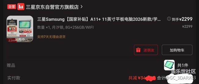 大概就是A9plus給我的印象太好了,之前一直用的七彩虹的八寸板,改用了A9plus以后那種爽感確實(shí)印象很深,大概因此也就対A11挺期待的,早上收到提示去三星官網(wǎng)上看了看,只有一個(gè)顏色可以選,也就是沒得選,只能去狗東,有兩個(gè)顏色,要9號(hào)才能發(fā)貨,還是買了,不過三星忒小氣,只附送了15瓦充電頭,要25瓦得自己掏錢