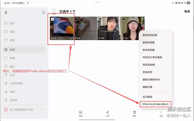 平板相冊(cè)里的Private album功能存在嚴(yán)重BUG 圖片