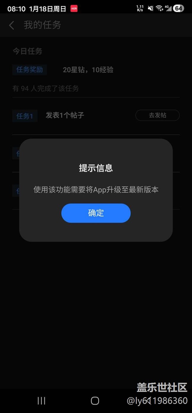 在每日任務(wù)直接點發(fā)帖,就會彈出圖一的提示。但檢測軟件版本又是最新的。在主頁點?發(fā)帖則一切正常。