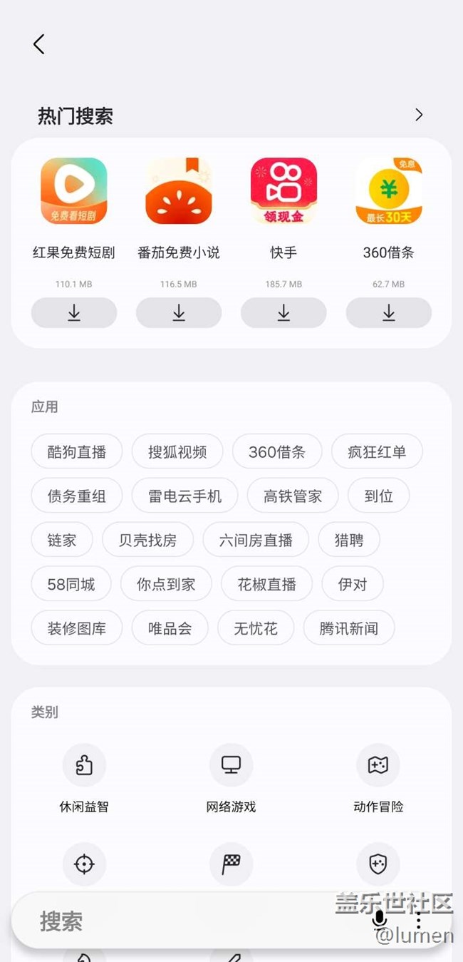 應(yīng)用商城一二級(jí)界面搜索欄建議都放在下面