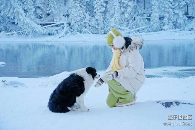 蹲下來(lái)和邊牧玩鬧時(shí),它的鼻尖沾了雪粒,眼睛亮得像浸在溪水里的星。后來(lái)我站在禾木河的石碑旁,看著落日把雪頂染成淡粉,才明白這里的冬天從不是冷寂的,它藏著流動(dòng)的河、蓬松的雪,還有每一步都踩在心上的溫柔。