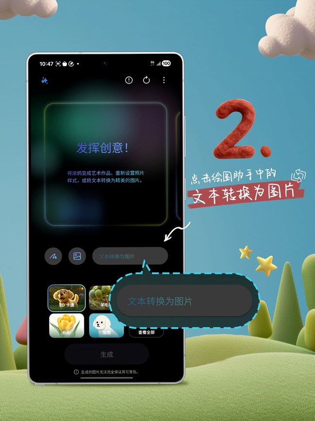 富有創(chuàng)意的你,也可以使用繪圖助手中的文生圖功能創(chuàng)造一波噢!