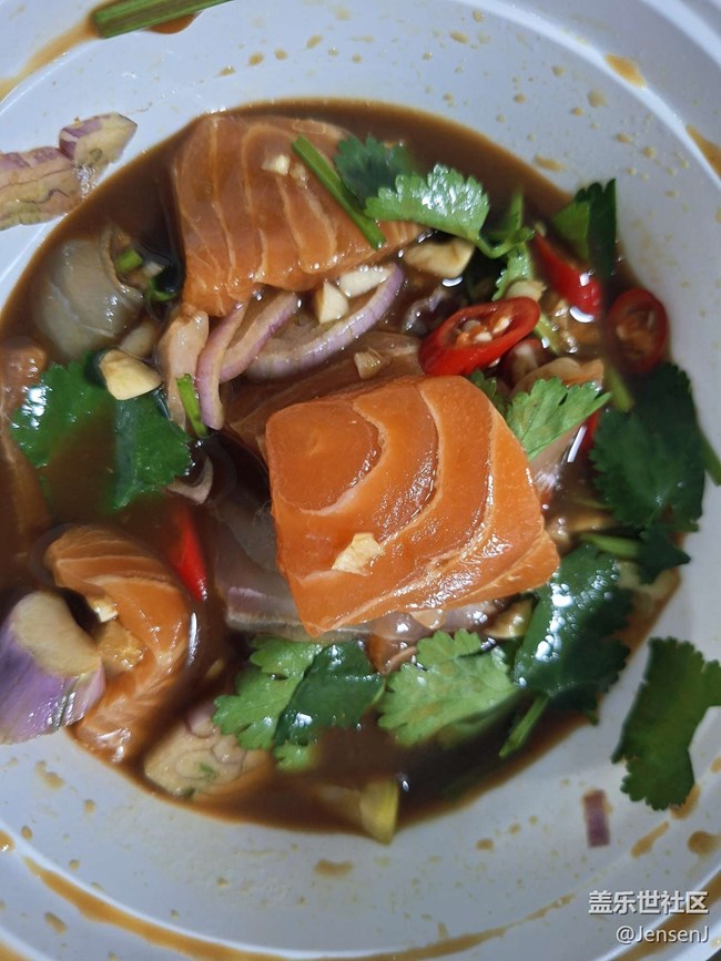 冬日暖陽(yáng)里來(lái)上一份三文魚搭配青瓜海膽味道真不錯(cuò)。