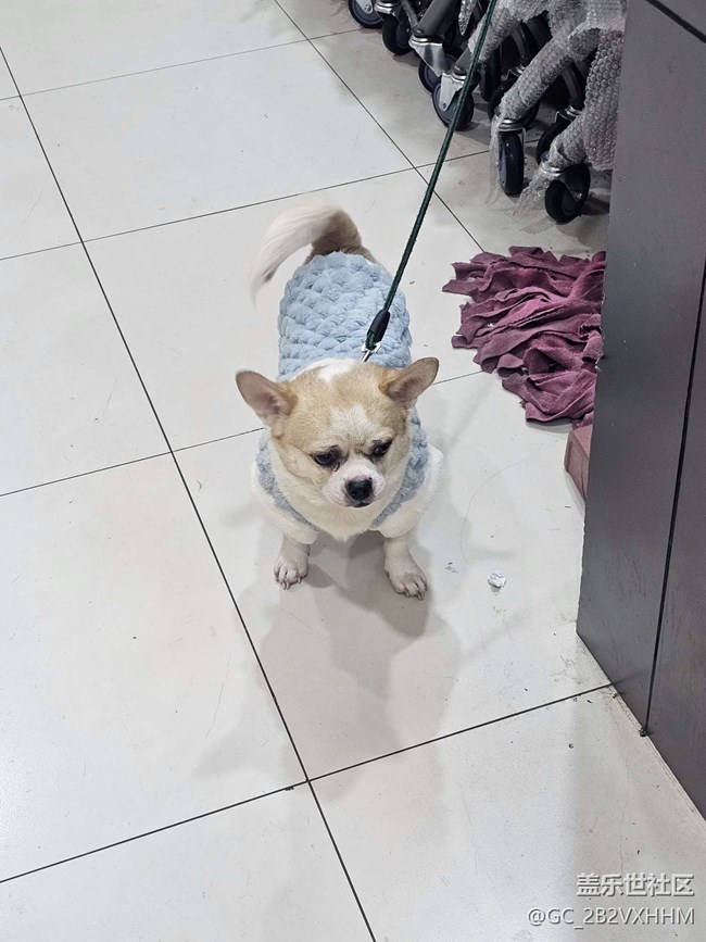 額,遇見一條穿衣服的狗子。它好丑啊。