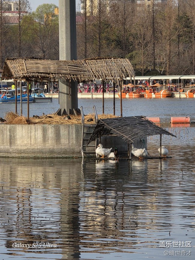 今天特意繞到湖邊散步,沒想到被春日的慢節(jié)奏狠狠治愈了。天朗氣清,抬頭是毫無雜質(zhì)的藍(lán)天,映得湖面波光粼粼,幾艘小船慢悠悠地漂在水面,偶爾劃過橋洞,留下一圈圈漣漪,連風(fēng)都變得慢悠悠的,帶著草木的清新。走累了坐在草坪邊,一眼就瞥見了那個(gè)呆萌的木架子小狗,靜靜立在綠草地上,像是在守護(hù)這片春日的寧靜,忍不住多看了兩眼。不遠(yuǎn)處的湖面上,一群鴨子正結(jié)伴游著,時(shí)不時(shí)扎進(jìn)水里覓食,撲騰著翅膀的樣子,透著股無拘無束的快樂,瞬間把生活里的煩心事都沖散了。