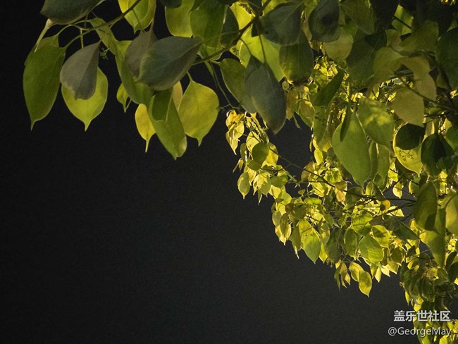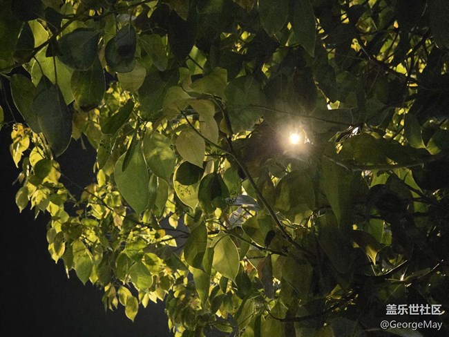 嫩綠的葉片被燈光染得透亮,光在葉隙間細(xì)碎地跳動,