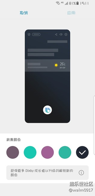 bixby 背景顏色已經(jīng)解鎖到黑色了。大家解鎖到那個(gè)顏色了。。。黑背景還真挺好看