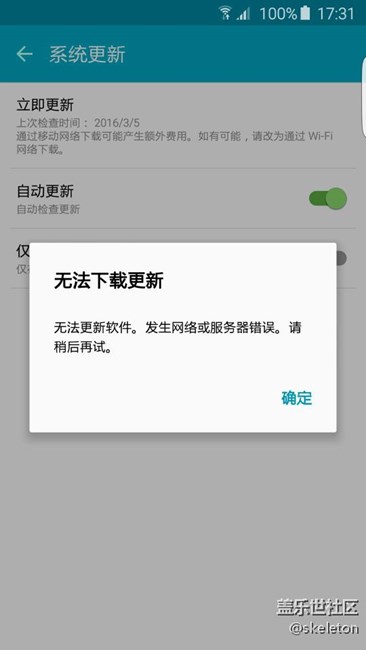 我的是S6edge,每次更新都如圖所示,是網(wǎng)絡(luò)原因還是設(shè)置問題?