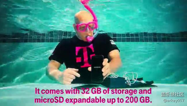 ▲首先我們來點口味沒那么重的吧,一位外國朋友戴著潛水裝備,在游泳池里對三星S7進行了一番獨具風(fēng)味的開箱。他甚至還使用三星S7對在水底的同伴進行了拍照!