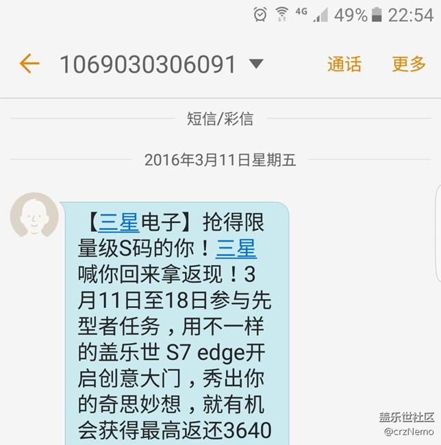 收到三星的S碼活動短信 新帖 圖片