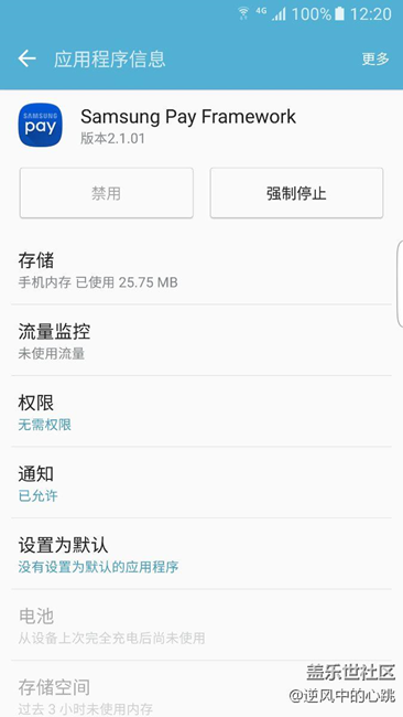 雖然6.0系統(tǒng)沒有帶來正式版Samsung pay,但我卻在軟件管理中找到了Samsungpay的服務(wù)框架,不能卸載和禁用,說明在后期更新中會支持Samsungpay